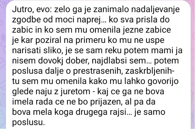 …nemočno, da nisi dobra mama, včasih je polno krivde in jeze, zato kričiš. Znaš biti osamljena, razočarana, v sebi prazna in brez energije. Imaš občutkek, da si za vse sama, da nihče ne vidi, kaj vse daš in kaj vse anrediš.